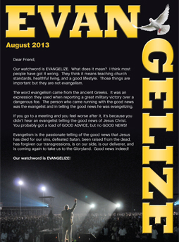 Our watchword is EVANGELIZE.  What does it mean?  I think most people have got it wrong.  They think it means teaching church standards, healthful living, and a good lifestyle.  Those things are important but they are not evangelism.