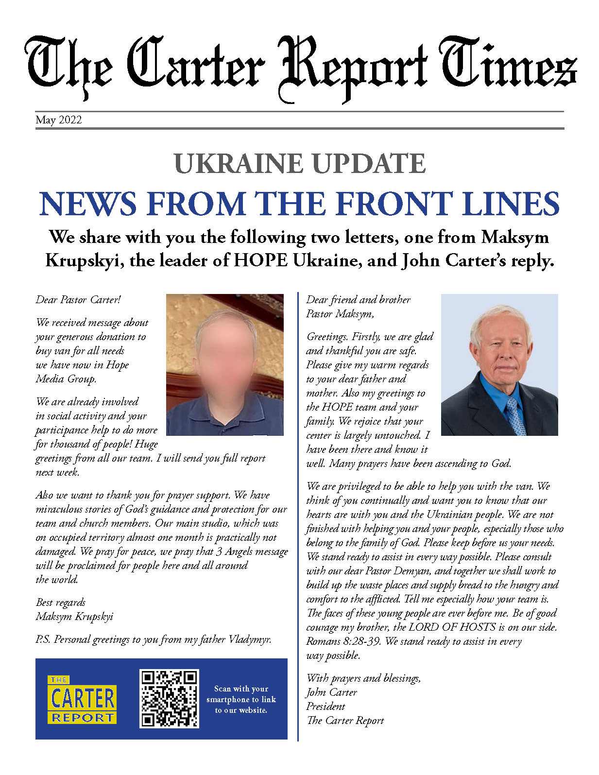 We share with you the following two letters, one from Maksym Krupskyi, the leader of HOPE Ukraine, and John Carter’s reply.